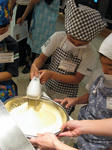 クッキングスタジオで米粉を使ったお菓子(カステラ、チュロス、シュークリーム)を作った。