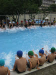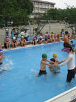 でも幼稚園より格段に広くなったプールで、3クラス一緒に入っても広々。