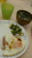 お母さん達には子どもと一緒にハムエッグと、きゅうりとキャベツの浅漬けを作ってもらった。