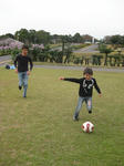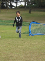 新しい靴を履いてサッカーをしたくてしょうがないだいち。