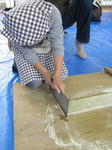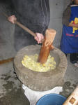 包丁で切ったあと、釜戸でゆでてもらい、水で洗って出来あがった。