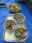お昼ご飯は自分たちで作ったおそばとからいももち。