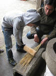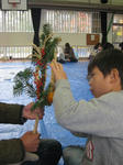 食後は地元のおじいちゃん指導のもとしめかざり作り。