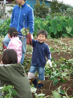 少し歩いたところに畑があって、そこでみんなで芋堀りをした。