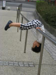 その帰りにマンションの手すりで逆上がりを披露。