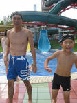 こないだ遊んだ公園内のプールの外のスライダーがこの日までということで、またまたプールへ。