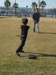 芝生の広場で野球、サッカー、馬とびをして遊び、16時近くになって船を観に行った。