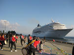 偶然大きな客船が寄港している日で、16時には出航するみたい。