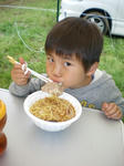 そんなこんなでなんとか設営が済み、腹ペコのお昼ご飯は持参したチャーシューを入れてしょうゆラーメンを作成♪