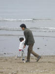 パパとだいちは砂浜で戦いごっこ。(がんばれ~)