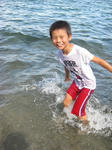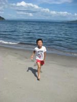 でも潮が満ちてきていて、砂浜にそのまま戻るとびしょぬれ。