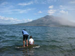 砂浜でバレーボールで遊んだ後は、鹿児島名物の「ぢゃんぼ餅」を食べに。
