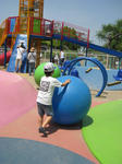 新しく出来た有料施設で大きなボールで遊んだりもしたけど、あまりの暑さで遊んでいられず。