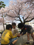 公園は桜が満開。花びらがときおりひらひらと舞い降りてきてとってもきれい。