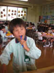 あっという間に食べ終えて、マイペースに歯磨きを始めていた(笑)