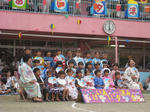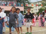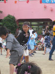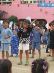 クラスごとの記念撮影が終わり、全園児の〇×ゲームがあり、華太鼓の音に合わせて盆踊り。