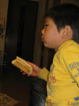 公園でたくさん遊び、プールで頑張り、晩御飯を食べたあとはデザートだといって、パンを2つむしゃむしゃと食べた。