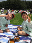 年長さんになって楽しみなことは”お天気のいい日に園庭でお弁当を食べられること。”