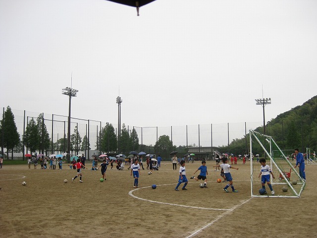 観ているとどうしてもボールが蹴りたくなるようで、応援半分、隅っこでボールを蹴ったりが半分。
