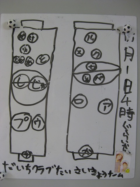 こないだはホワイトボードになにやらフォーメーションが(笑)
