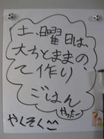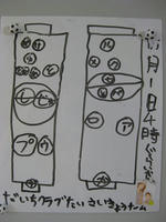 今日のサッカーの練習は4年生と練習試合をして、だいちがいいシュートを決めて、2対2で引き分けだったそうだ。