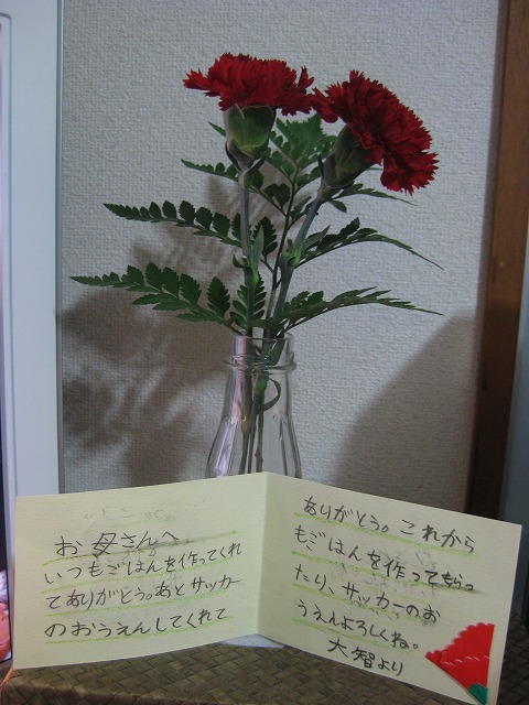 児童クラブで「母の日」用のメッセージカードを作成してきて、数日前にもらっていた。