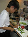 帰って来て、お味噌汁とサラダを一緒に作って完成。