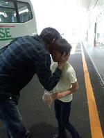 バスが発車して姿が見えなくなると涙をこぼしていた。