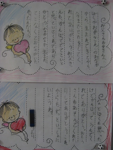 そして発表しおわった子は、リボンのついたお手紙を親に渡しにきてくれた。