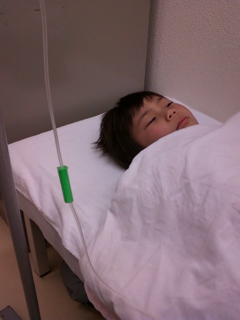 あまりに顔色が悪い。ということで2時間点滴を受けた。