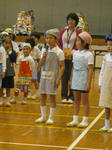 みんなで歌の発表があり、手作りのおみこしで体育館を2周パレードしてから、学習の発表があった。