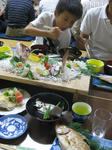 お魚大好きだいちは、もくもくとお刺身や鯛を食べた食べた。
