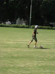 午前中はパパと校庭でサッカー。