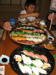 晩ご飯は、地元の人気回転ずしで買った持ち帰り寿司を家で食べた。