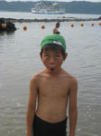 お次はホテルの庭にあるプールで、だいちだけ少し泳いだ。