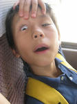 だいちは車酔いをして具合が悪くなり、道の駅の畳の休憩室でダウン。