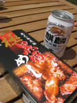 お昼ご飯は駅弁、肉巻きおにぎり。