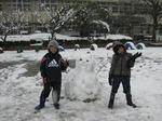 母も子もおおはしゃぎで雪合戦、雪だるま作り、雪上サッカーをして遊んだ。