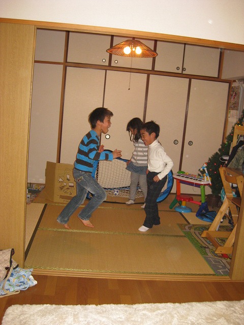 結構時間がかかってしまって遊ぶ時間が少なかったけど、部屋の中でサッカーをしたりして大騒ぎ。