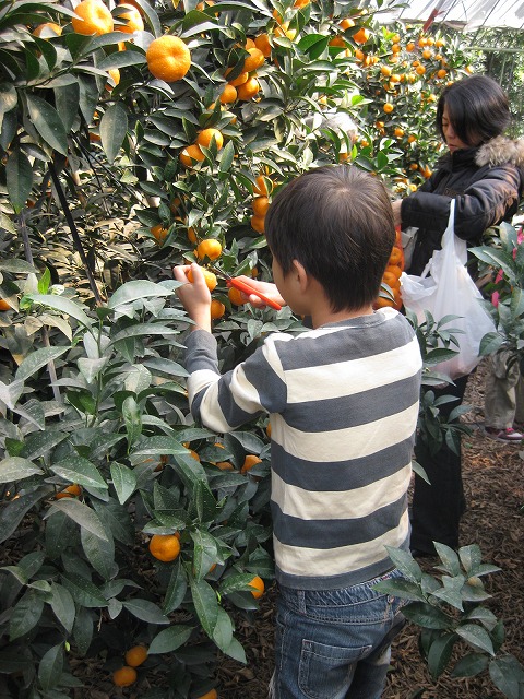 市で募集していた小みかんの収穫体験に当選したので、だいちと参加。