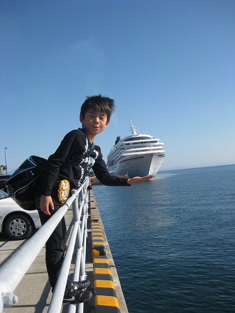 芝生の広場で野球、サッカー、馬とびをして遊び、16時近くになって船を観に行った。