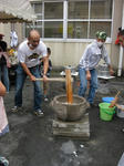 おやじの会が作るつきたてのおもちは大人気。