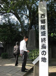 その後、城山の展望台から鹿児島の中心街の景色を眺め、西郷隆盛が西南戦争終結前に立てこもった洞窟を見学、そして亡くなった場所も見学、車窓から西郷隆盛の像、西南戦争時の銃弾痕も見学。