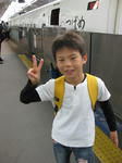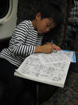 帰りの新幹線では宿題の漢字の書き取りをするだいち。