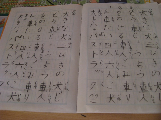 そして宿題はプリントが1枚あって、教科書の音読、それに加えて先生のオリジナルなお手本を見ながら書き取りの宿題も始まり、これがまた時間がかかるかかる。