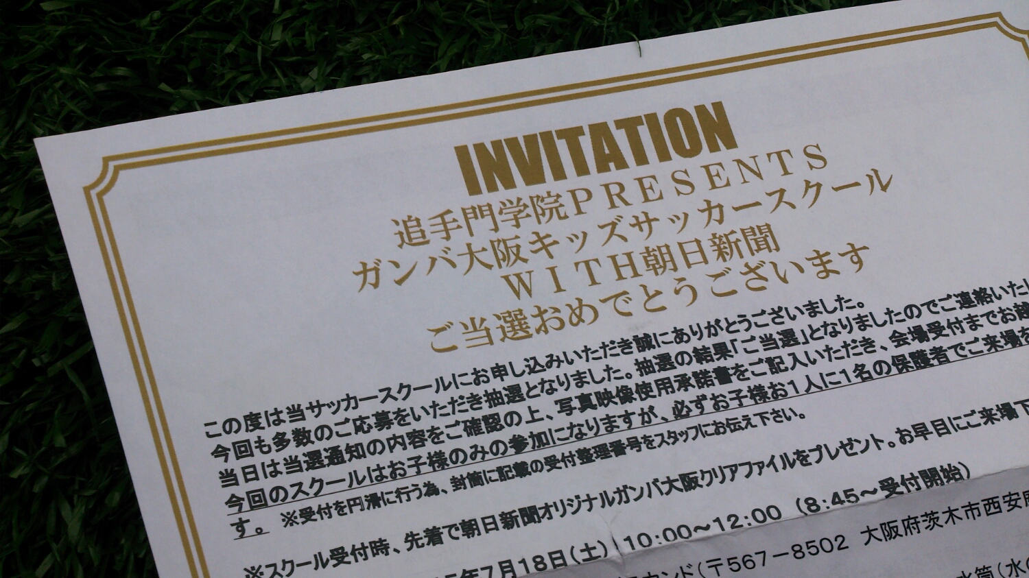 申し込んでいたサッカースクールに当たって電車で出かけた。