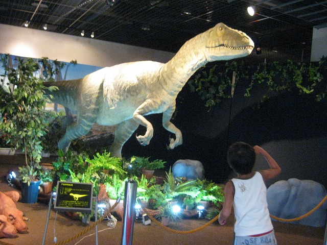 あわてて科学館に再入場、地震シュミレーション体験をしたり、恐竜展を観たりして雨がやむのを待った。