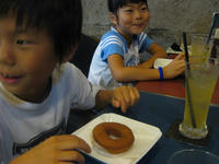 シフォンケーキや、子どもたちはドーナツなどを食べて休憩タイム。