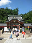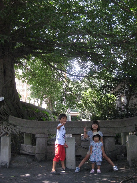 島を車で走り、大正時代の大噴火で埋没してしまった鳥居を見学。