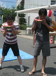 ちょうどイベントでスイカの早食い競争があり、パパ2人が参加。